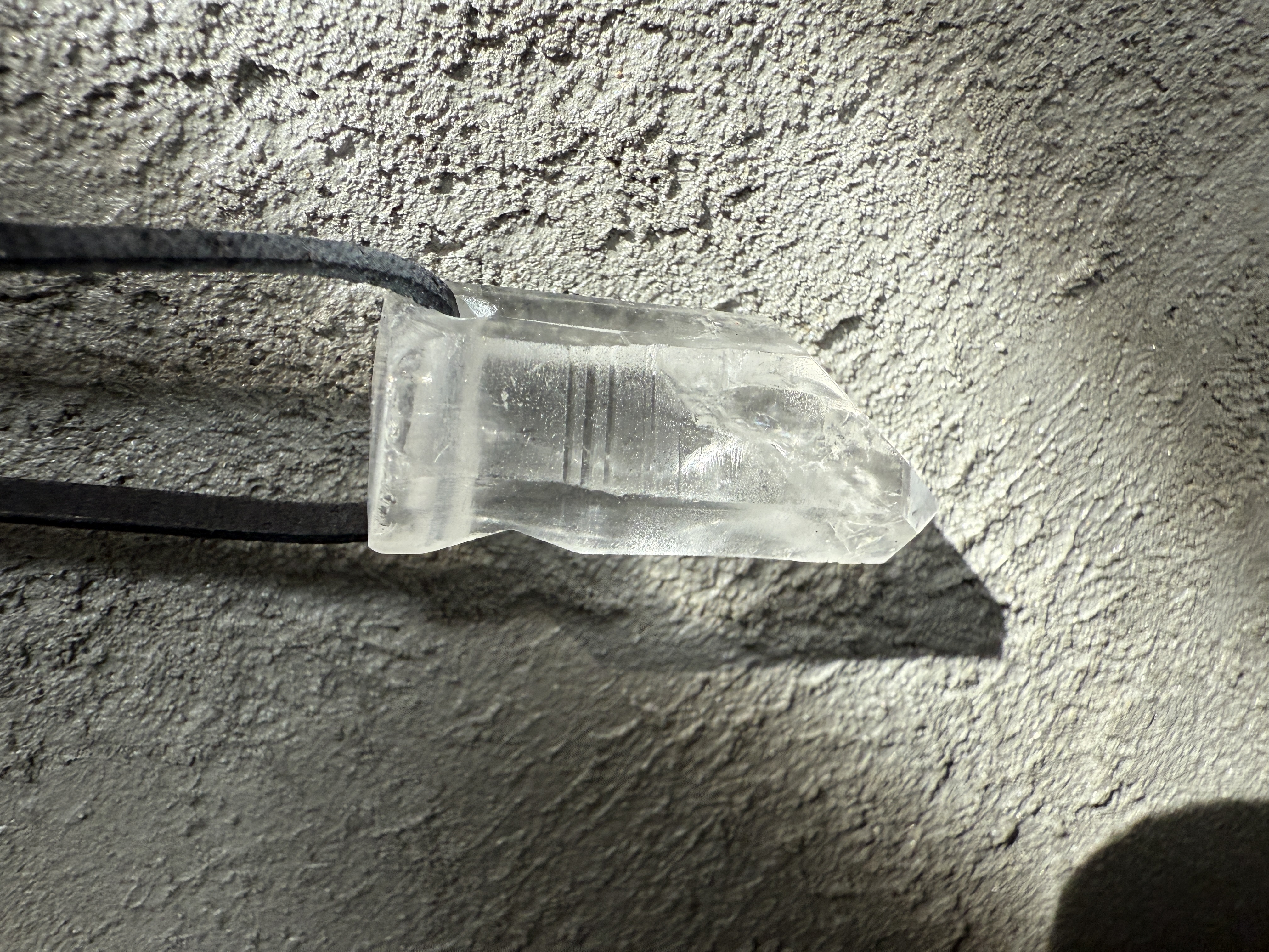 💎 Přírodní lemurský křišťál – provrtaný, přírodní špička s typickou strukturou lemurských krystalů