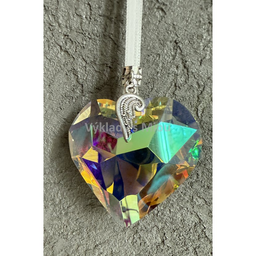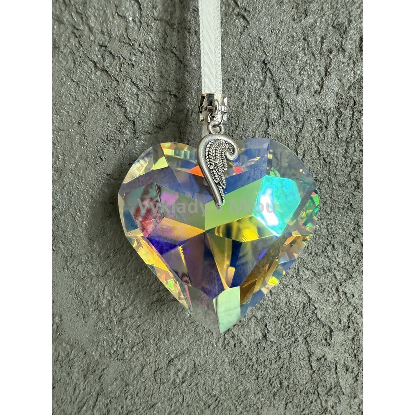 🪽 Křišťálové feng-shui srdce s andělským křidélkem